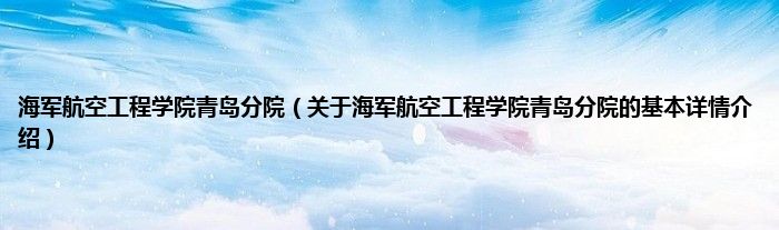 海军航空工程学院青岛分院(关于海军航空工程学院青岛分院的基本详情介绍)