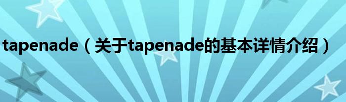 大家好我是小蝌蚪,tapenade,关于tapenade的基本详情介绍很多人还不知道,那么现在让我们一起来看看吧!