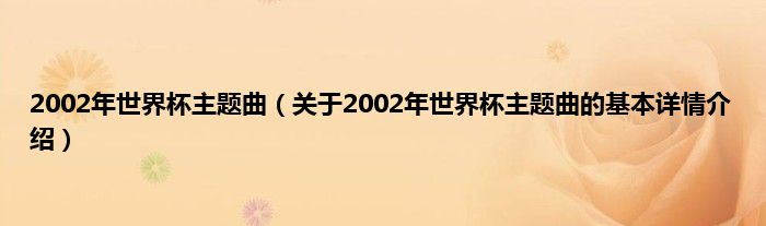 本文关于2002年世界杯主题曲的基本详情介绍就讲解完毕,希望对大家有所帮助。