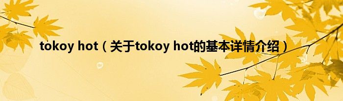 本文关于tokoy hot的基本详情介绍就讲解完毕,希望对大家有所帮助。