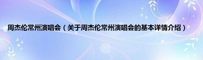 本文关于周杰伦常州演唱会的基本详情介绍就讲解完毕,希望对大家有所帮助。