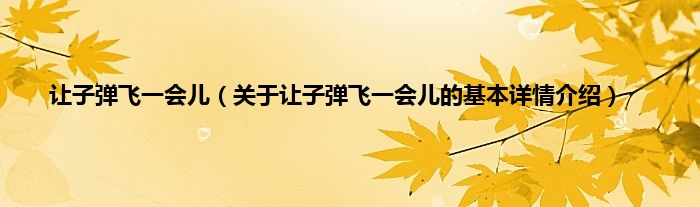 本文关于让子弹飞一会儿的基本详情介绍就讲解完毕,希望对大家有所帮助。