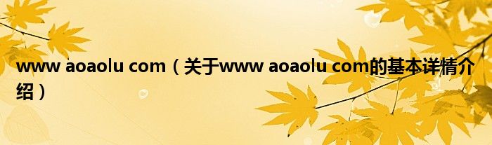 本文关于www aoaolu com的基本详情介绍就讲解完毕,希望对大家有所帮助。