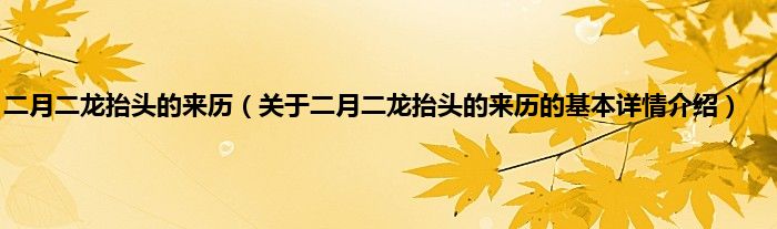 二月二龙抬头的来历(关于二月二龙抬头的来历的基本详情介绍)