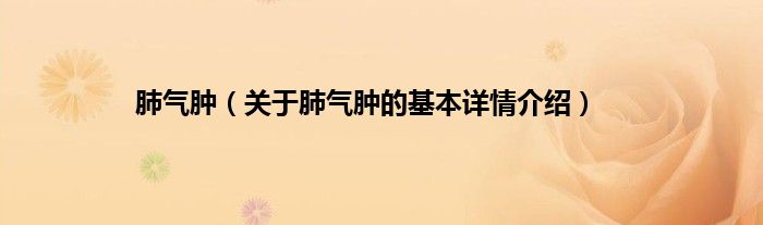 本文关于肺气肿的基本详情介绍就讲解完毕,希望对大家有所帮助。