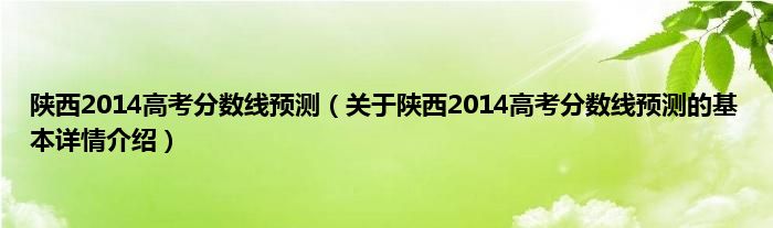 本文关于陕西2014高考分数线预测的基本详情介绍就讲解完毕,希望对大家有所帮助。