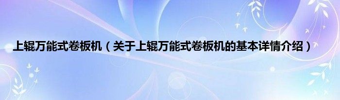 本文关于上辊万能式卷板机的基本详情介绍就讲解完毕,希望对大家有所帮助。
