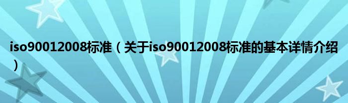 本文关于iso90012008标准的基本详情介绍就讲解完毕,希望对大家有所帮助。