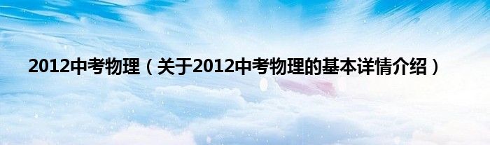 本文关于2012中考物理的基本详情介绍就讲解完毕,希望对大家有所帮助。