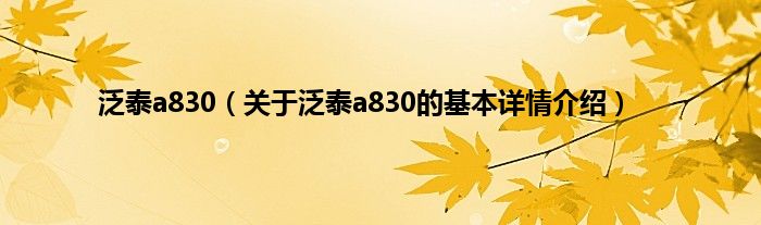 本文关于泛泰a830的基本详情介绍就讲解完毕,希望对大家有所帮助。