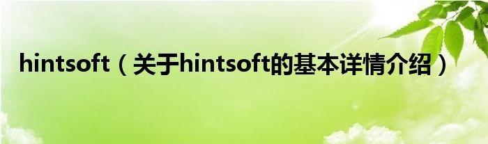 本文关于hintsoft的基本详情介绍就讲解完毕,希望对大家有所帮助。