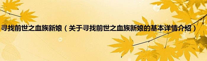 本文关于寻找前世之血族新娘的基本详情介绍就讲解完毕,希望对大家有所帮助。