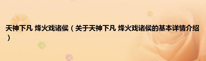 本文关于天神下凡 烽火戏诸侯的基本详情介绍就讲解完毕,希望对大家有所帮助。