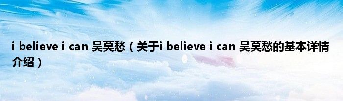 本文关于i believe i can 吴莫愁的基本详情介绍就讲解完毕,希望对大家有所帮助。