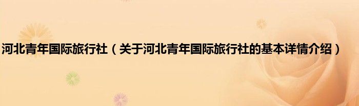 本文关于河北青年国际旅行社的基本详情介绍就讲解完毕,希望对大家有所帮助。