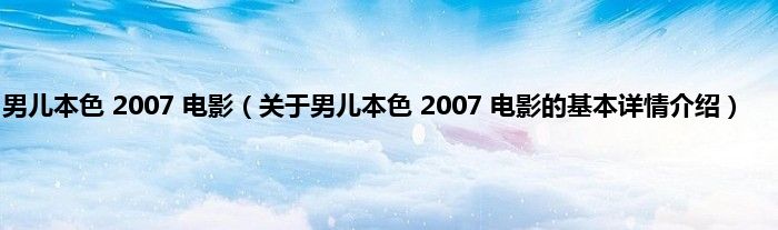 本文关于男儿本色 2007 电影的基本详情介绍就讲解完毕,希望对大家有所帮助。