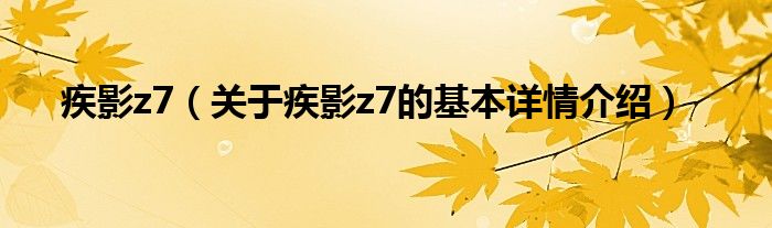 本文关于疾影z7的基本详情介绍就讲解完毕,希望对大家有所帮助。