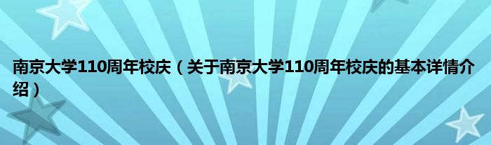 本文关于南京大学110周年校庆的基本详情介绍就讲解完毕,希望对大家有所帮助。