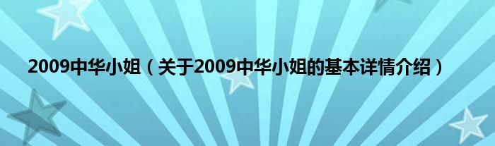 本文关于2009中华小姐的基本详情介绍就讲解完毕,希望对大家有所帮助。