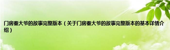 本文关于门房秦大爷的故事完整版本的基本详情介绍就讲解完毕,希望对大家有所帮助。