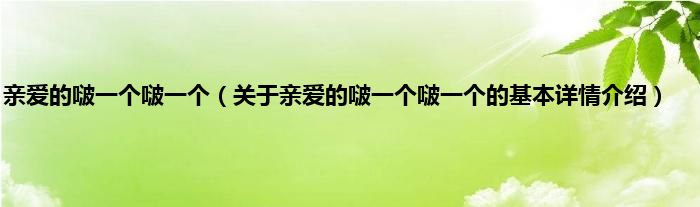 本文关于亲爱的啵一个啵一个的基本详情介绍就讲解完毕,希望对大家有所帮助。