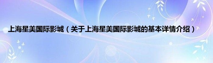 本文关于上海星美国际影城的基本详情介绍就讲解完毕,希望对大家有所帮助。