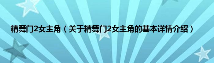 本文关于精舞门2女主角的基本详情介绍就讲解完毕,希望对大家有所帮助。