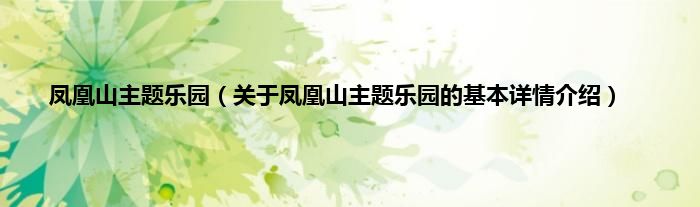 本文关于凤凰山主题乐园的基本详情介绍就讲解完毕,希望对大家有所帮助。