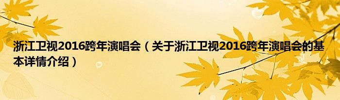 本文关于浙江卫视2016跨年演唱会的基本详情介绍就讲解完毕,希望对大家有所帮助。
