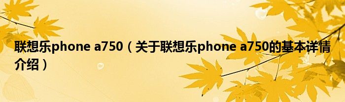 本文关于联想乐phone a750的基本详情介绍就讲解完毕,希望对大家有所帮助。