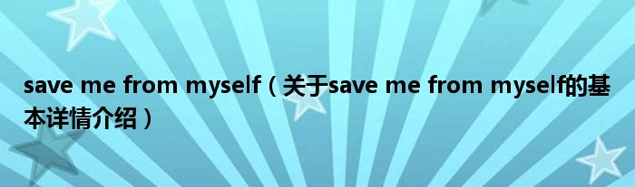 本文关于save me from myself的基本详情介绍就讲解完毕,希望对大家有所帮助。