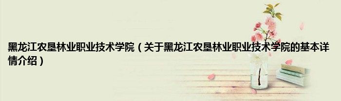 本文关于黑龙江农垦林业职业技术学院的基本详情介绍就讲解完毕,希望对大家有所帮助。