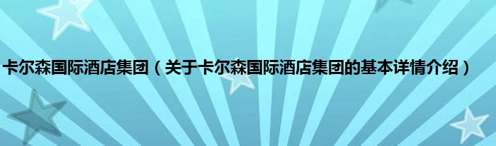 本文关于卡尔森国际酒店集团的基本详情介绍就讲解完毕,希望对大家有所帮助。