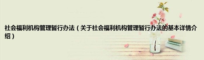 本文关于社会福利机构管理暂行办法的基本详情介绍就讲解完毕,希望对大家有所帮助。