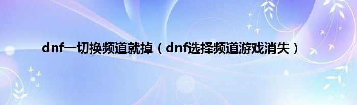 大家好,小问来为大家解答以上问题。dnf一切换频道就掉,dnf选择频道游戏消失这个很多人还不知道,现在让我们一起来看看吧!