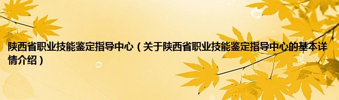 1、陕西省职业技能鉴定指导中心是为适应国家职业资格证书制度建设的发展,结合职业技能鉴定工作的管理特点而建立的一个教育机构。