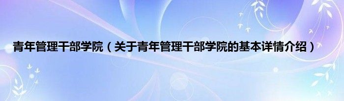 大家好我是小蝌蚪,青年管理干部学院,关于青年管理干部学院的基本详情介绍很多人还不知道,那么现在让我们一起来看看吧!