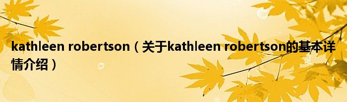 本文关于kathleen robertson的基本详情介绍就讲解完毕,希望对大家有所帮助。