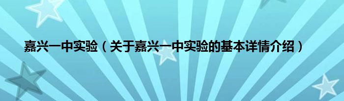 本文关于嘉兴一中实验的基本详情介绍就讲解完毕,希望对大家有所帮助。