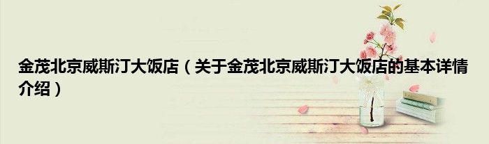 本文关于金茂北京威斯汀大饭店的基本详情介绍就讲解完毕,希望对大家有所帮助。