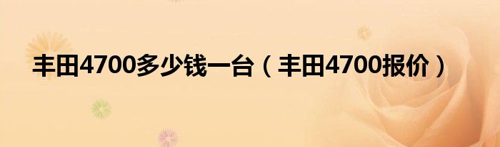 以上就是【丰田4700多少钱一台,丰田4700报价】相关内容。