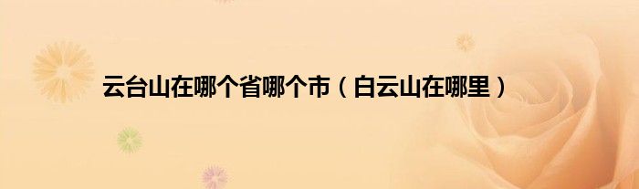 以上就是【云台山在哪个省哪个市,白云山在哪里】相关内容。
