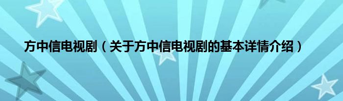 本文关于方中信电视剧的基本详情介绍就讲解完毕,希望对大家有所帮助。