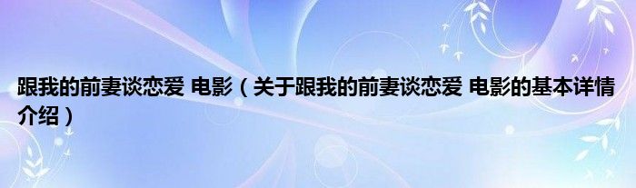 本文关于跟我的前妻谈恋爱 电影的基本详情介绍就讲解完毕,希望对大家有所帮助。