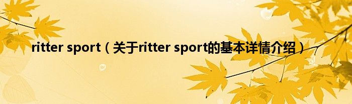 本文关于ritter sport的基本详情介绍就讲解完毕,希望对大家有所帮助。
