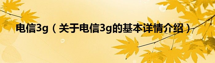 本文关于电信3g的基本详情介绍就讲解完毕,希望对大家有所帮助。