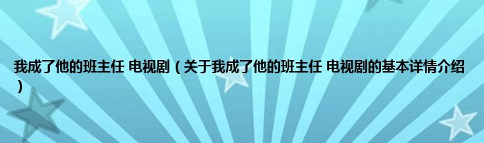 本文关于我成了他的班主任 电视剧的基本详情介绍就讲解完毕,希望对大家有所帮助。
