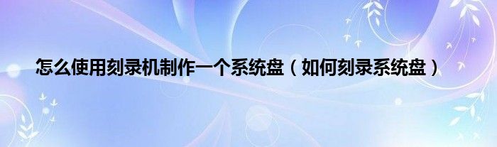 以上就是【怎么使用刻录机制作一个系统盘,如何刻录系统盘】相关内容。