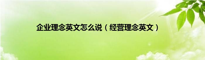 大家好,小问来为大家解答以上问题。企业理念英文怎么说,经营理念英文这个很多人还不知道,现在让我们一起来看看吧!