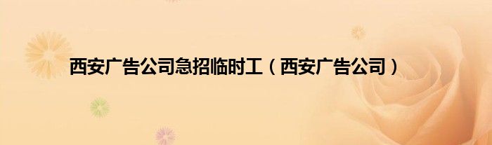 大家好,小问来为大家解答以上问题。西安广告公司急招临时工,西安广告公司这个很多人还不知道,现在让我们一起来看看吧!